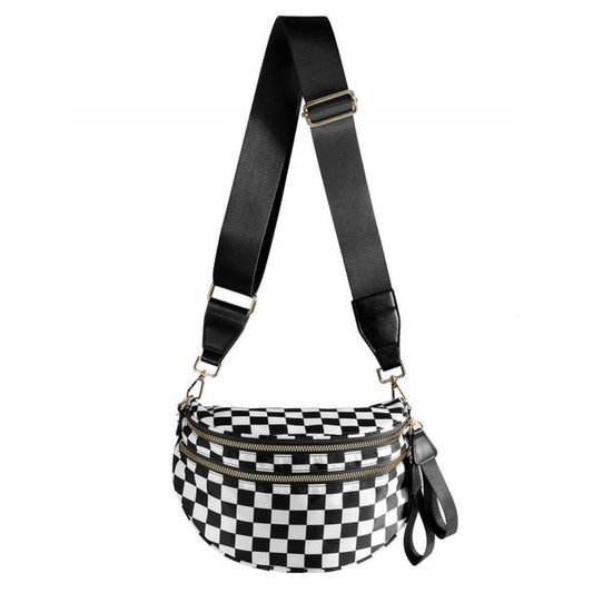 Fashionable Checkerboard Pattern Crossbody Bag, Casual Versatile Zipper Shoulder Bag for Women, Trendy All-Match Commuter Bag for Daily Used Preowned Elegant Chain Strap Crossbody Bag Gothic Steampunk Handbag with Ghost Large Capacity Gym Bag Colorblock